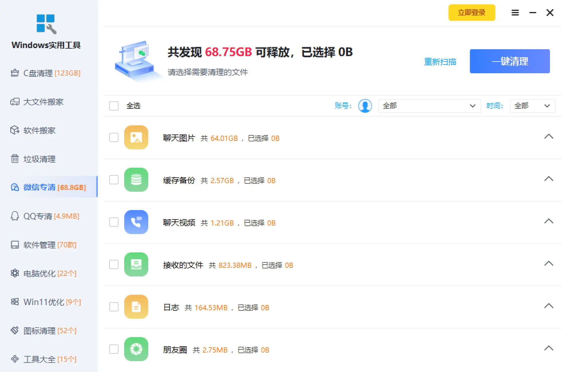深度扫描微信QQ,分析聊天记录占用情况专业清理微信和QQ的缓存、图片、视频等一键清理守护您的隐私安全。